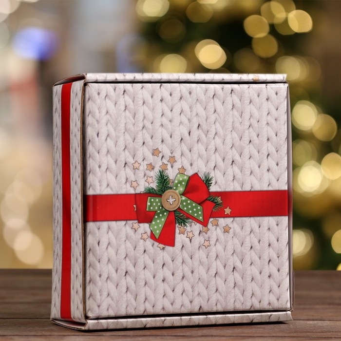 Новый год. Коробка подарочная, крышка-дно, "Тёплый Новый Год", 14,5 х 14,5 х 6 см.