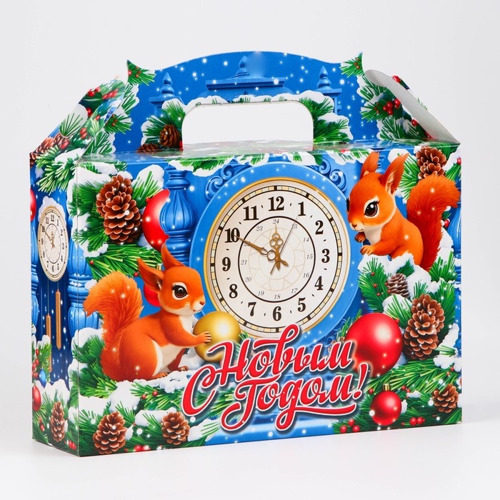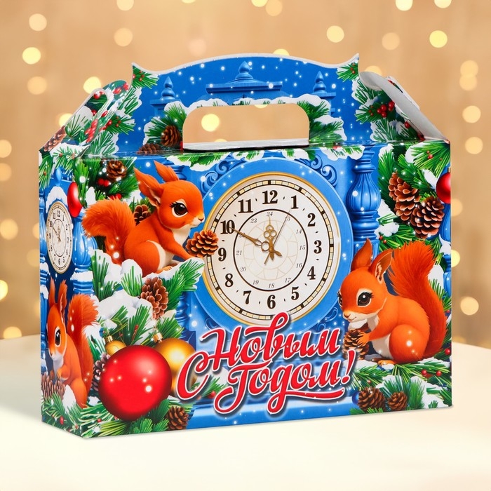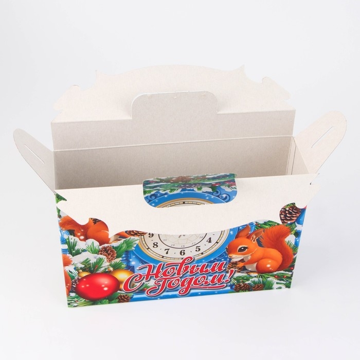Новый год. Коробка подарочная новогодняя Ларец Белочки 26 х 23 х 7 см.