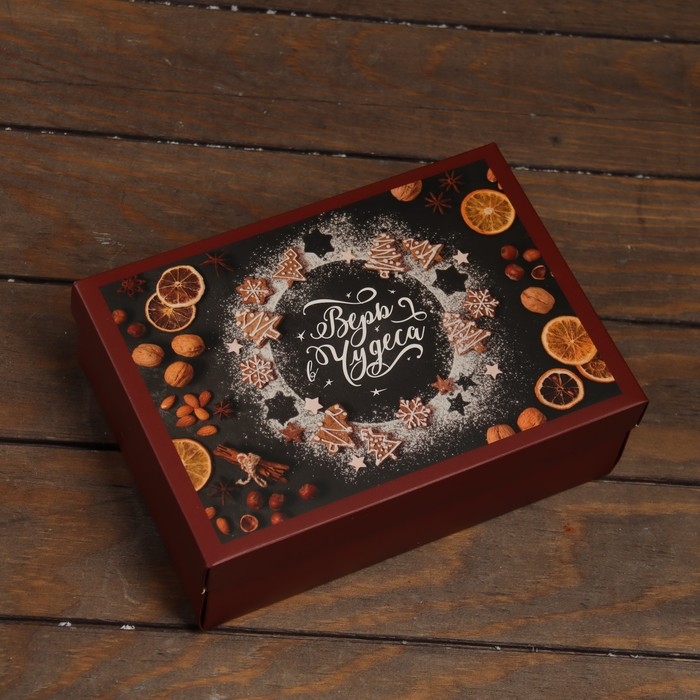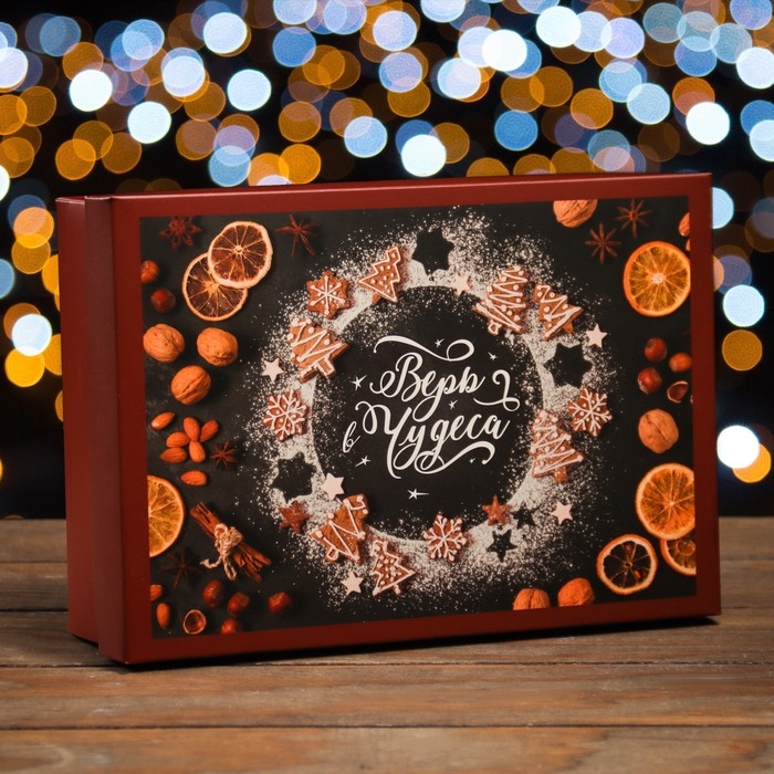 Новый год. Коробка подарочная новогодняя складная, крышка-дно "Верю в чудеса" 24 х 17 х 8 см