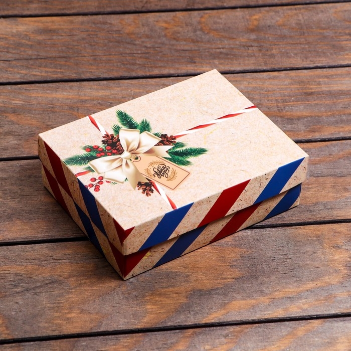 Новый год. Коробка подарочная новогодняя складная, "Почта", 16,5 х 12,5 х 5,2 см