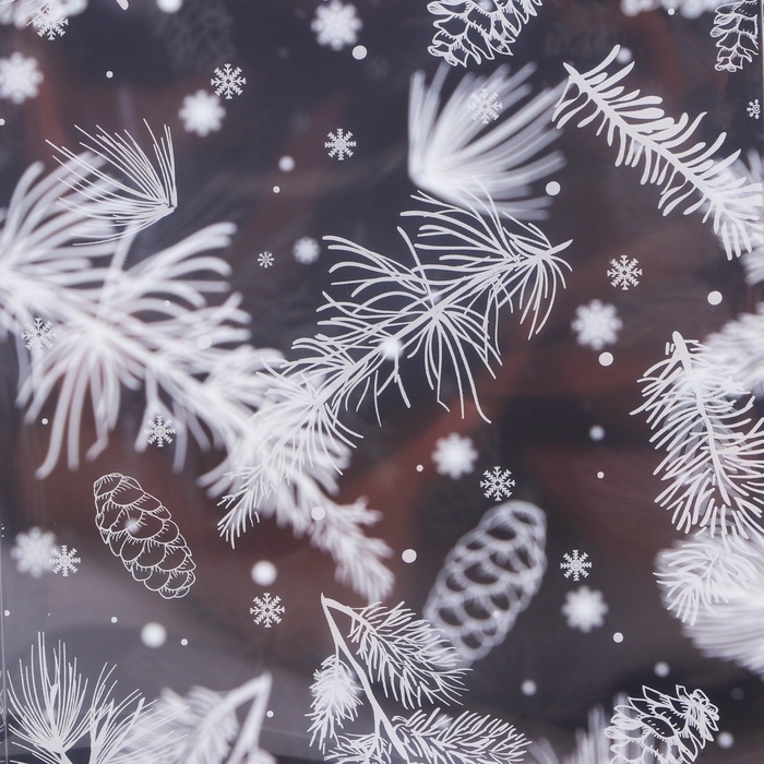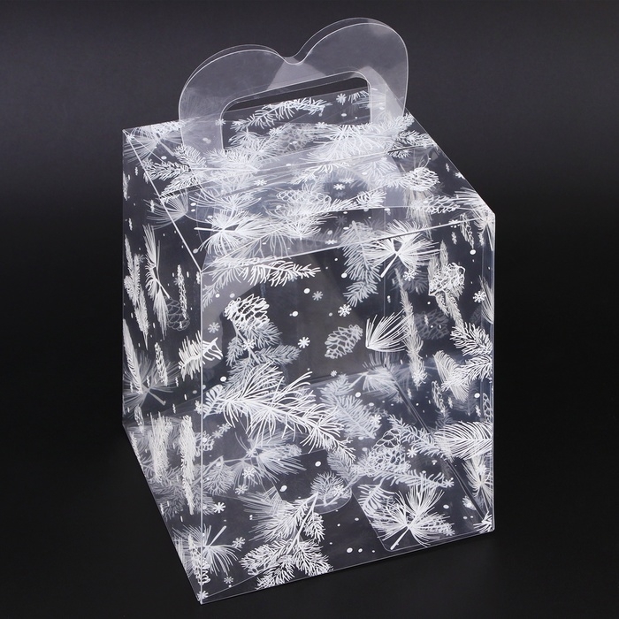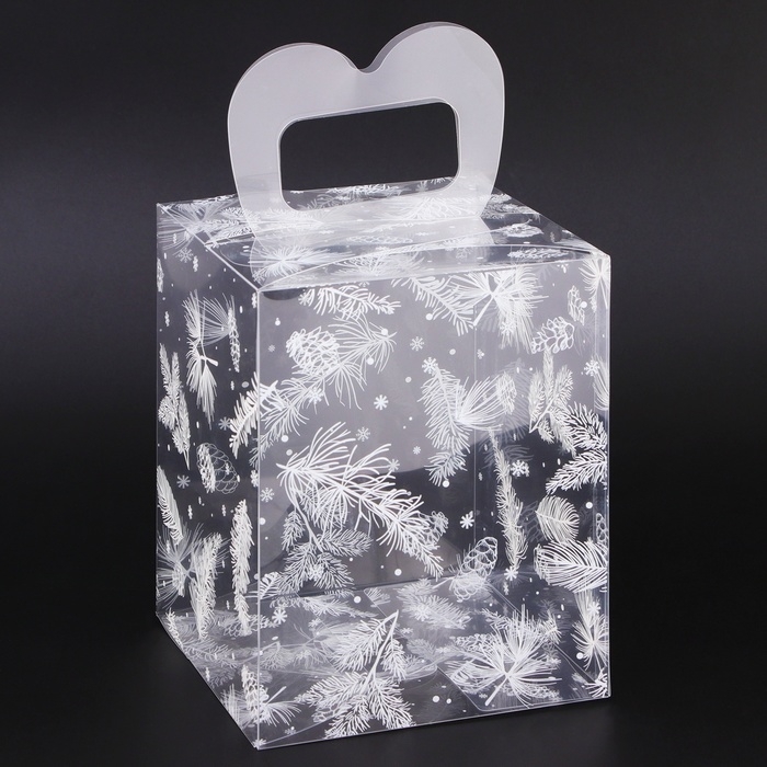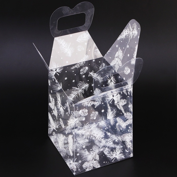 Новый год. Коробка подарочная новогодняя складная ПВХ "Новогодние веточки" 12 х 12 х 15 см.
