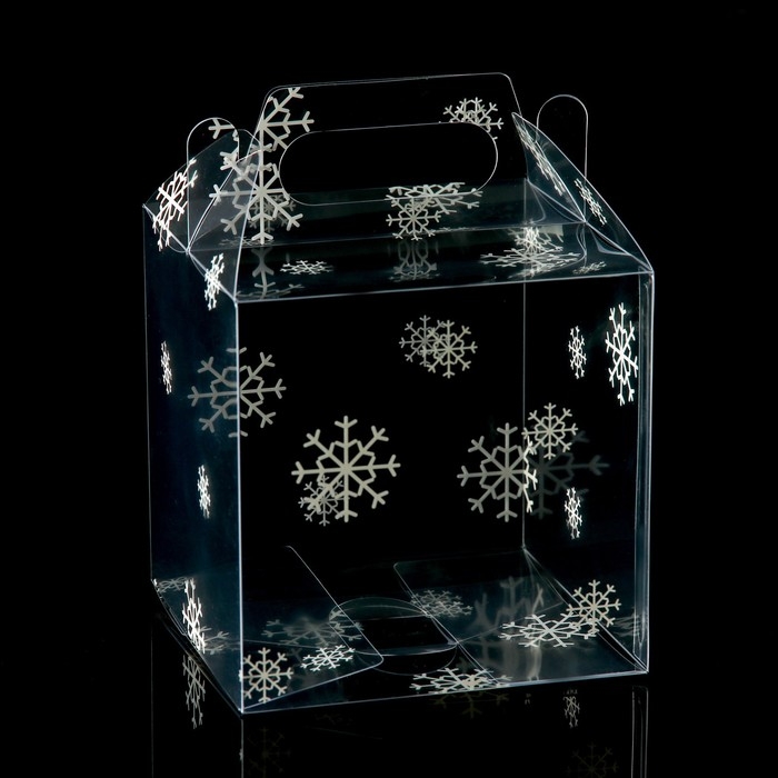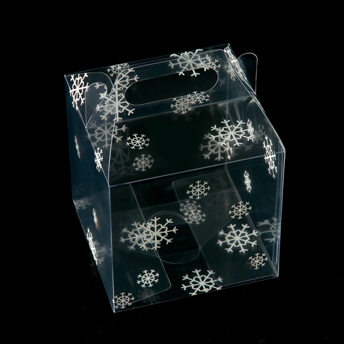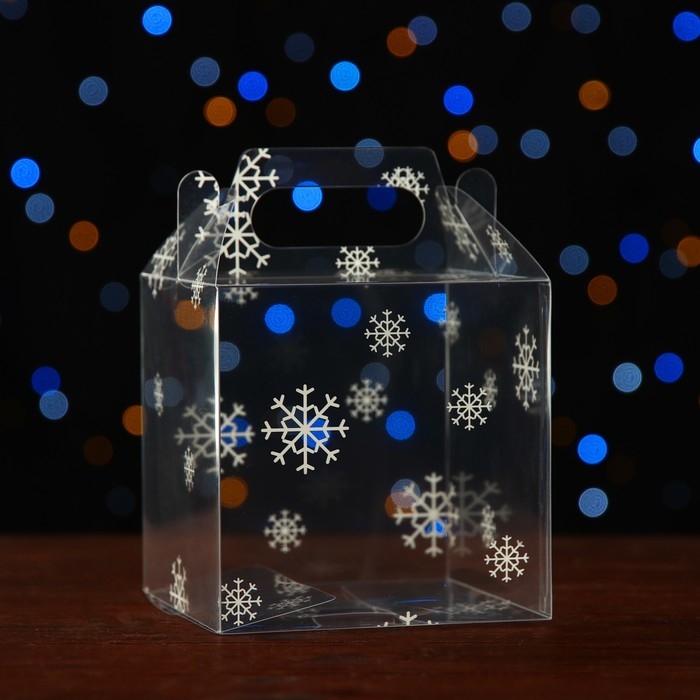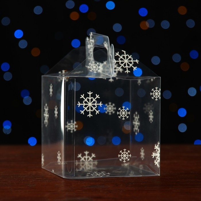 Новый год. Коробка подарочная новогодняя складная ПВХ "Праздничное настроение" 11 x 11 x 11 см .