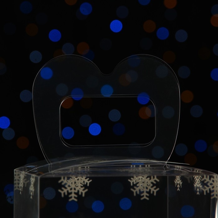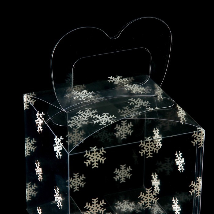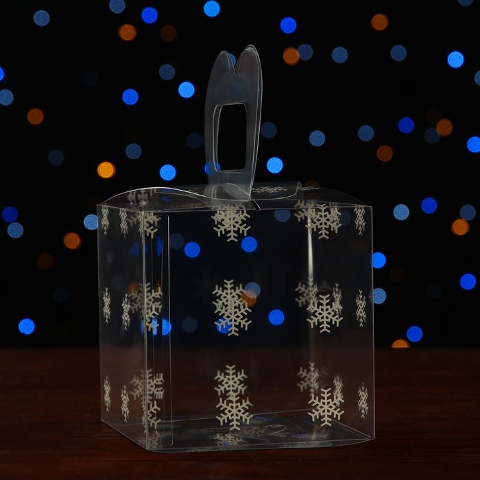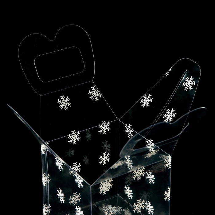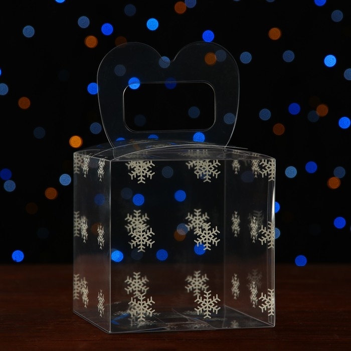 Новый год. Коробка подарочная новогодняя складная ПВХ "Снежинки" 11 x 11 x 11 см.