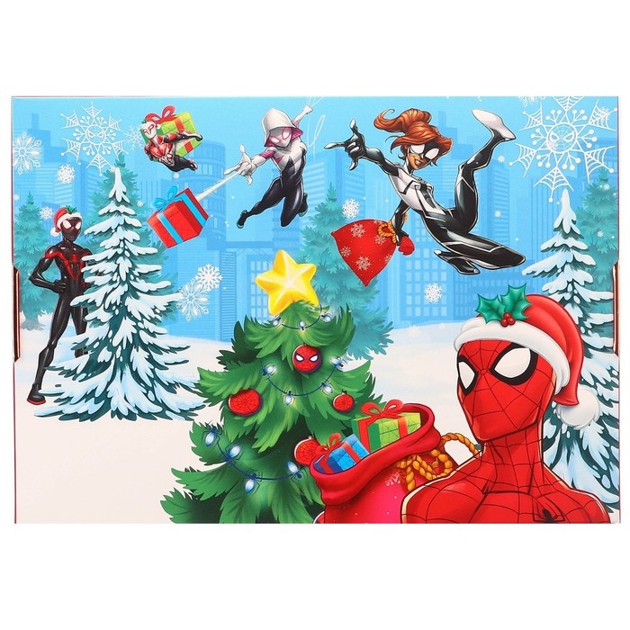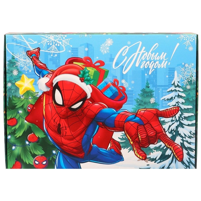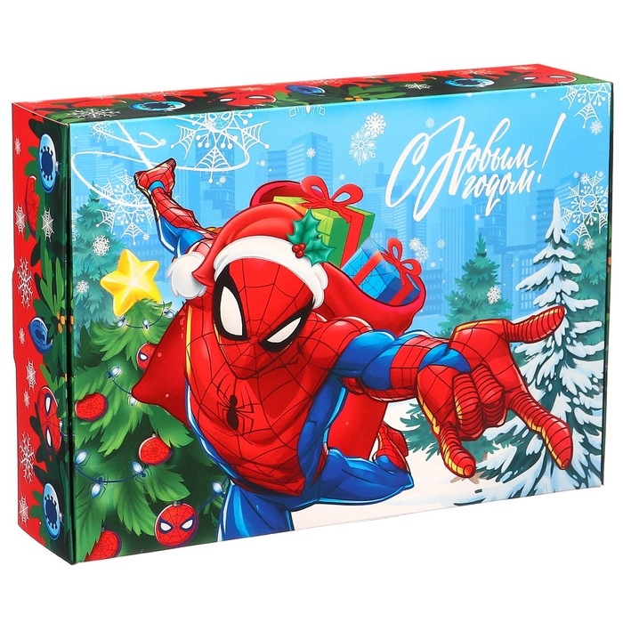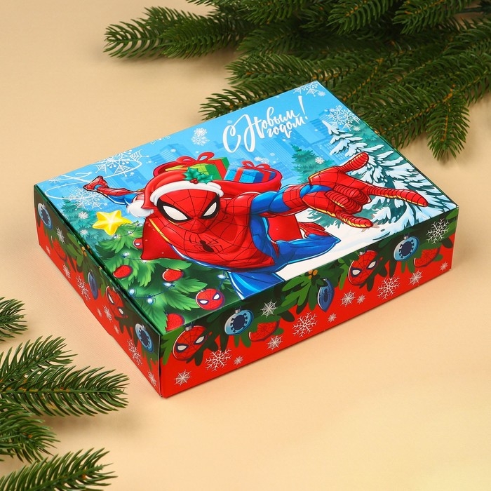 Новый год. Коробка подарочная, "С Новым годом", 21 х 15 х 5 см, Человек-паук
