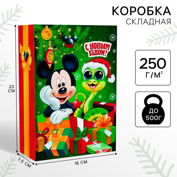 Новый год. Коробка подарочная "Символ года 2025 Змея" 16х23х7.5 см, Микки Маус