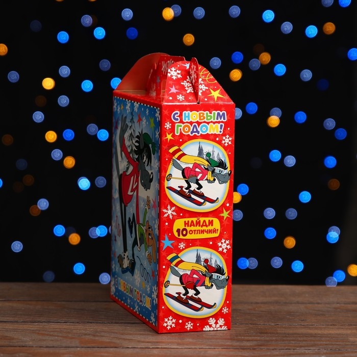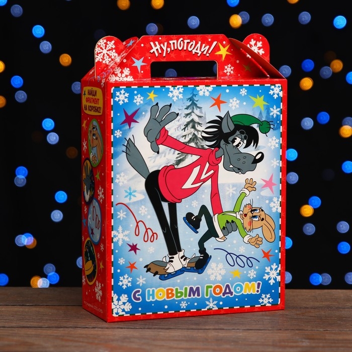 Новый год. Коробка подарочная складная "Ну,погоди!" 17 х 7 х 25 см.