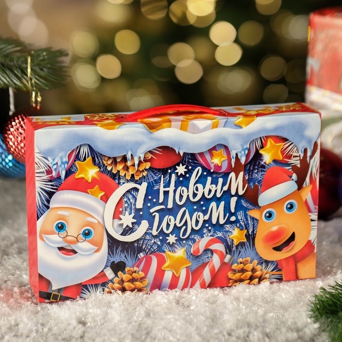Упаковка для подарка является неотъемлемым атрибутом любого подарка. Подобранная со вкусом упаковка придаст подарку еще большую ценность. Материал изделия - картон. Коробка складная прекрасно подойдет для оформления подарка на - Новый год. Наполнить можно конфетами и различными новогодними сувенирами. Удобная ручка сверху.