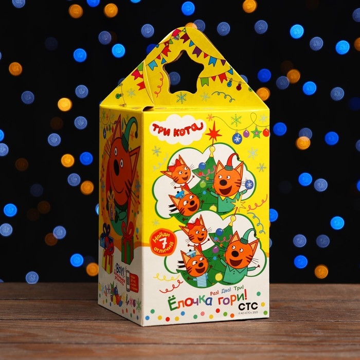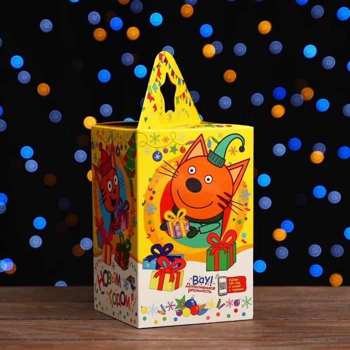 Новый год. Коробка подарочная складная "Три кота" 11 х 11 х 17,2 см.