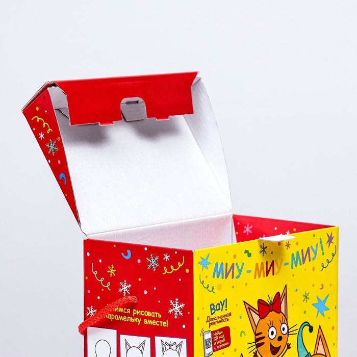 Новый год. Коробка подарочная складная "Три кота" 19,8 х 12 х 24,3 см.
