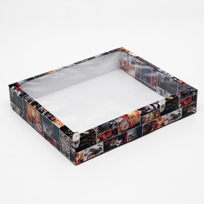 Новый год. Коробка сборная крышка-дно с окном, "Санта", 37 х 32 х 7 см.