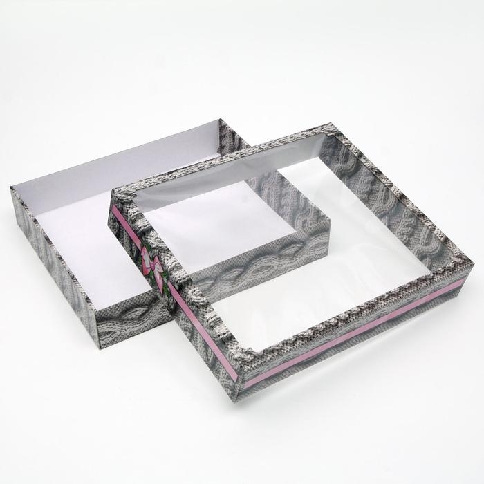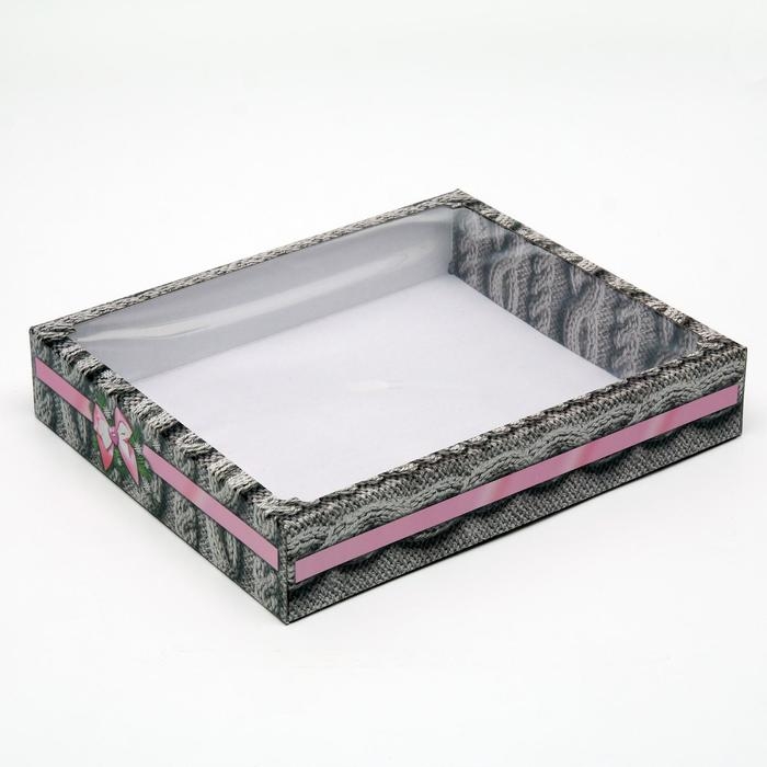 Новый год. Коробка сборная крышка-дно с окном, "Теплый Новый Год", 37 х 32 х 7 см.