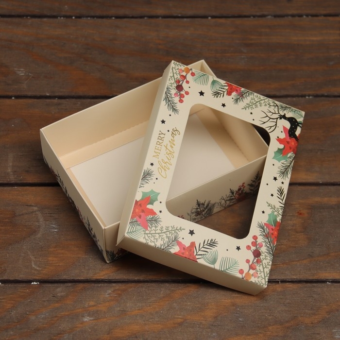 Новый год. Коробка складная, крышка-дно, с окном "MERRY CHRISTMAS" 16,5 х 12,5 х 5,2 см