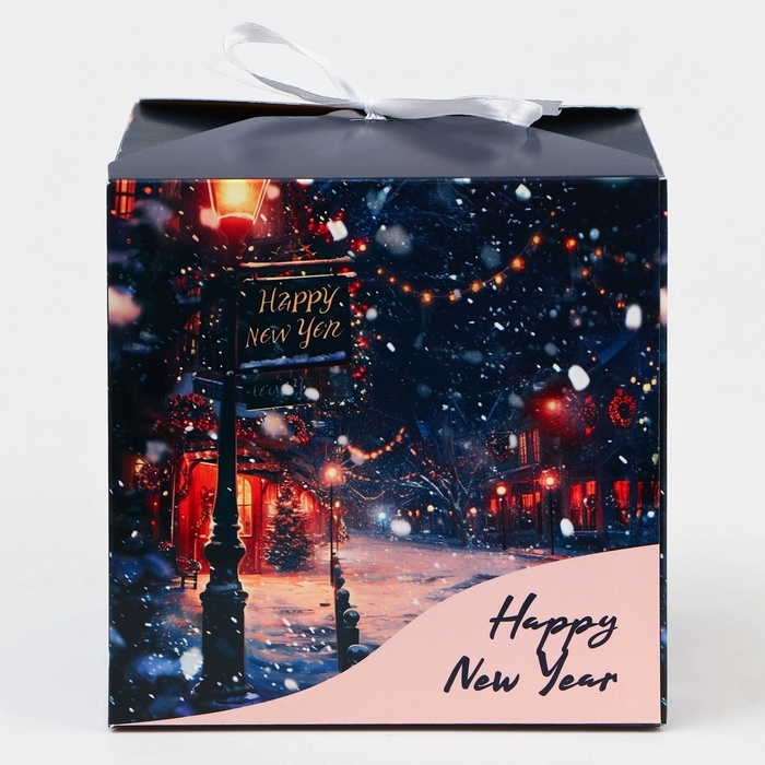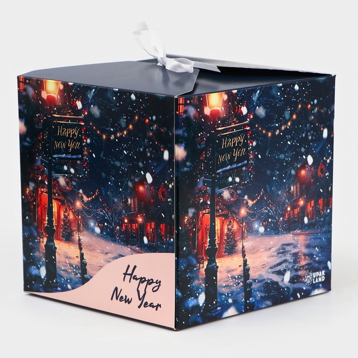 Новый год. Коробка складная, подарочная новогодняя "Новогодняя ночь" 14 х 14 х 14 см.
