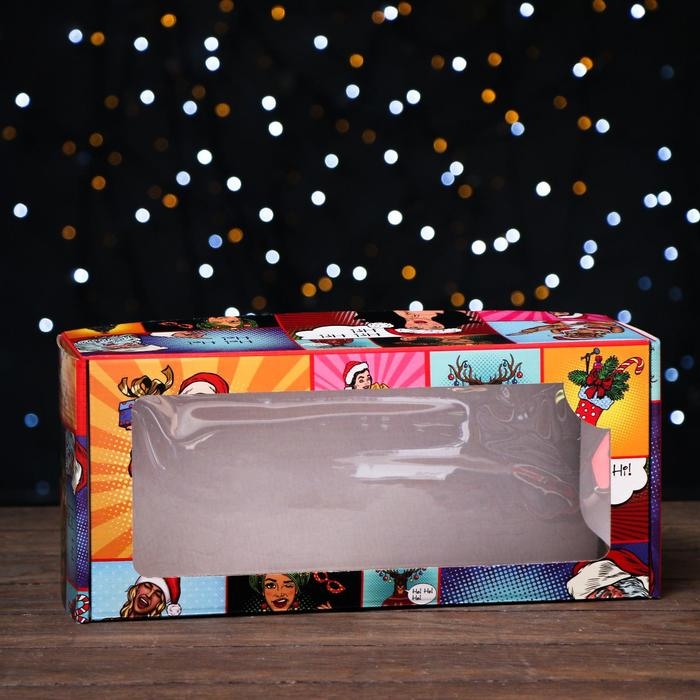 Новый год. Коробкасамосборная,сокном,"Pop-artНО!НО!НО!",16х35х12см.