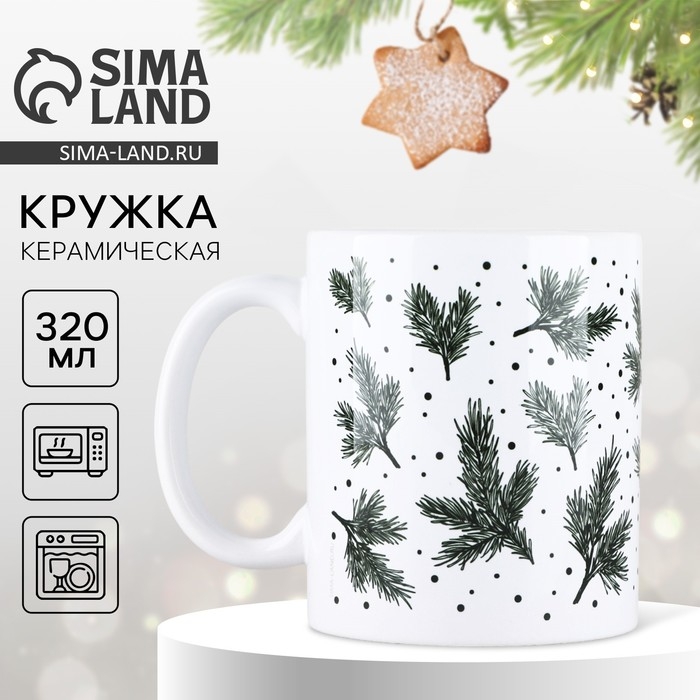 Новый год. Кружка керамическая «Веточки», 320 мл, цвет белый