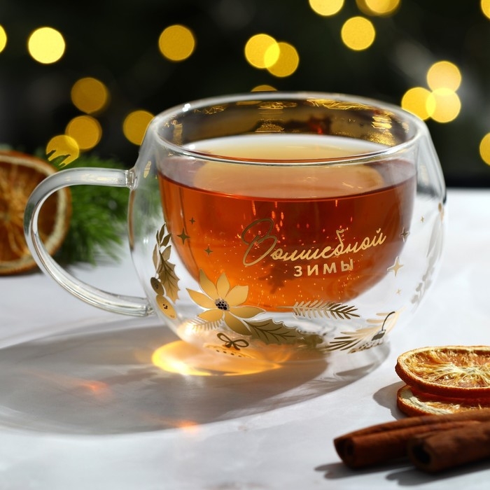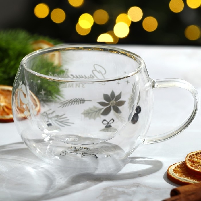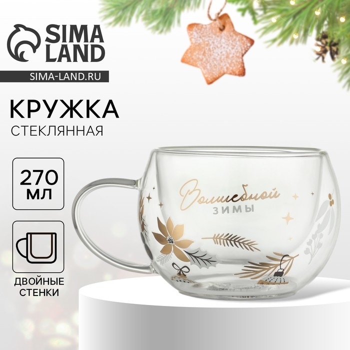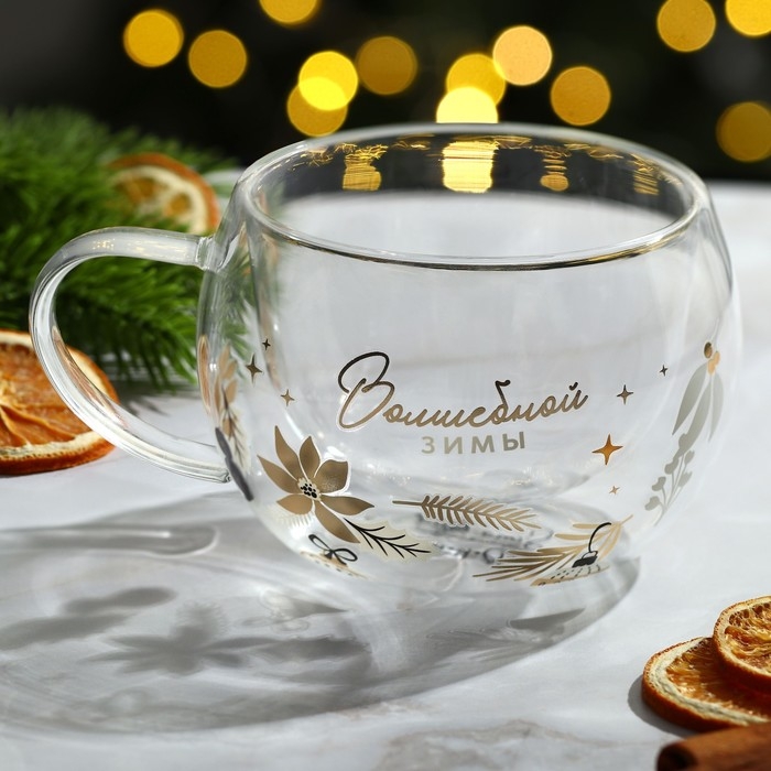 Новый год. Кружка новогодняя стеклянная с двойными стенками «Волшебной зимы», 270 мл
