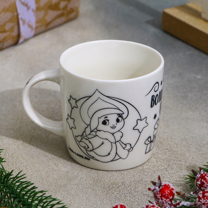 Новый год! Кружка под раскраску «Волшебного года» Снегурочка, 300 мл, кисть, блёстки