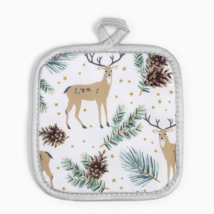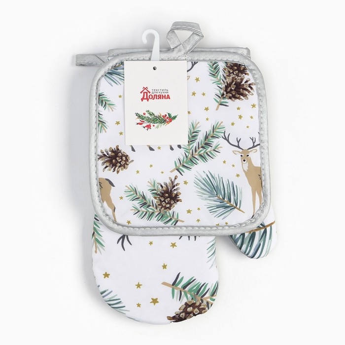 Новый год. Куханный набор 2 празмер Доляна Олени прихватка 17*17 см, варежка 26*16 см,100% п/э