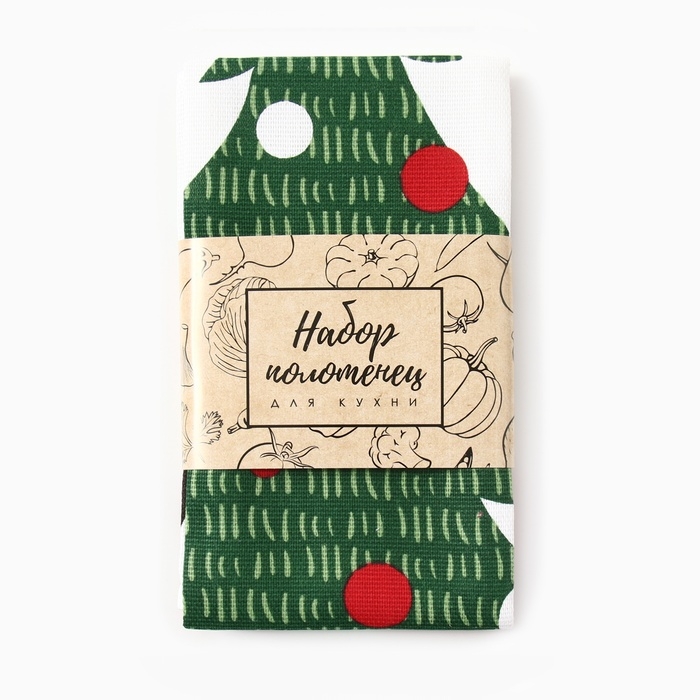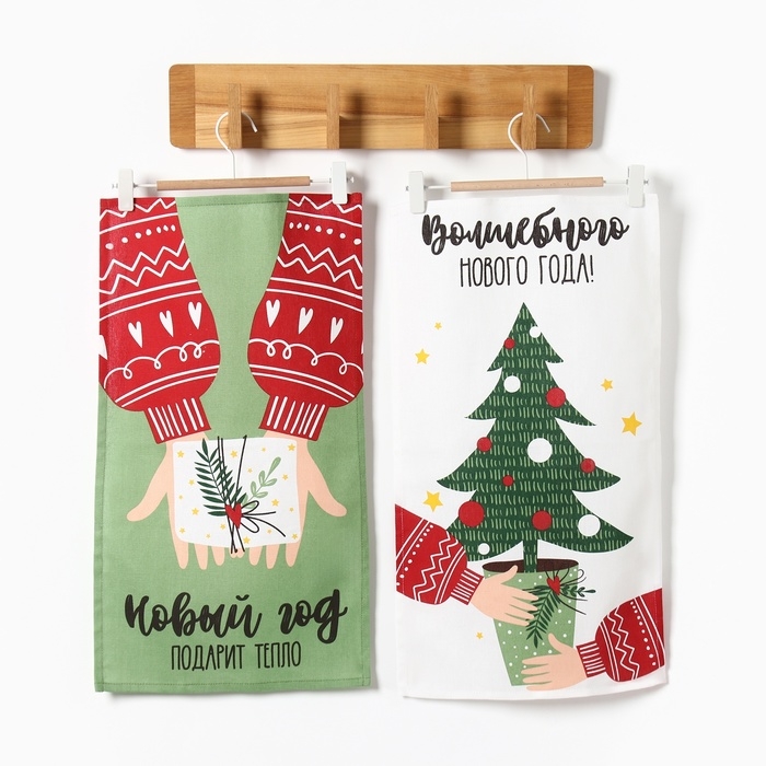 Новый год. Кухонный набор полотенец Доляна «Тепло Нового года» 35х60 см-2шт., 100% хлопок, 160 г/м2
