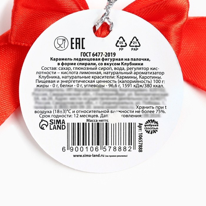 Новый год! Леденец, ёлочная игрушка в форме спирали «Все мечты сбудутся», со вкусом клубники, 30 г