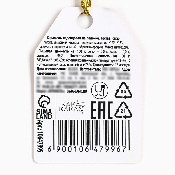 Новый год! Леденец на палочке «Снегирь», 25 г
