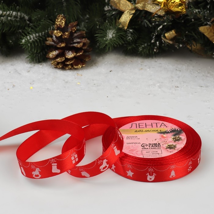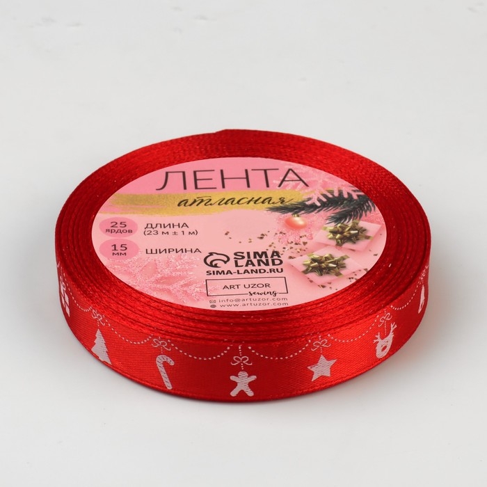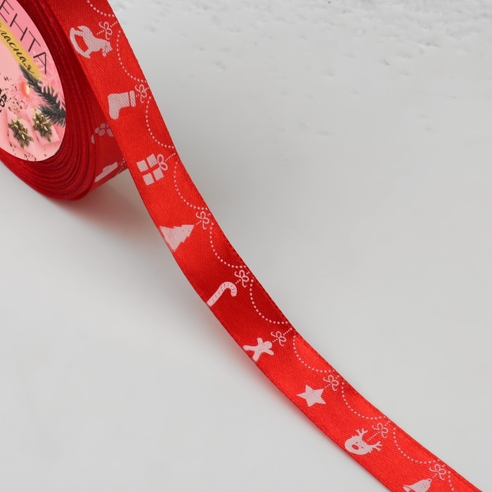 Новый год! Лента атласная «Новогодняя гирлянда», 15 мм, 23 ± 1 м, цвет красный №26