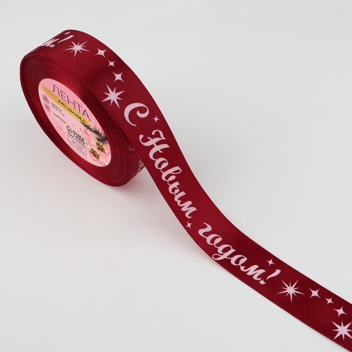 Новый год! Лента атласная «С Новым годом!», 25 мм, 23 ± 1 м, цвет красный