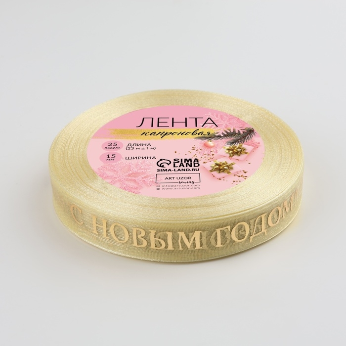 Новый год! Лента атласная с тиснением «С Новым годом!», 25 мм, 23 ± 1 м, цвет бежевый