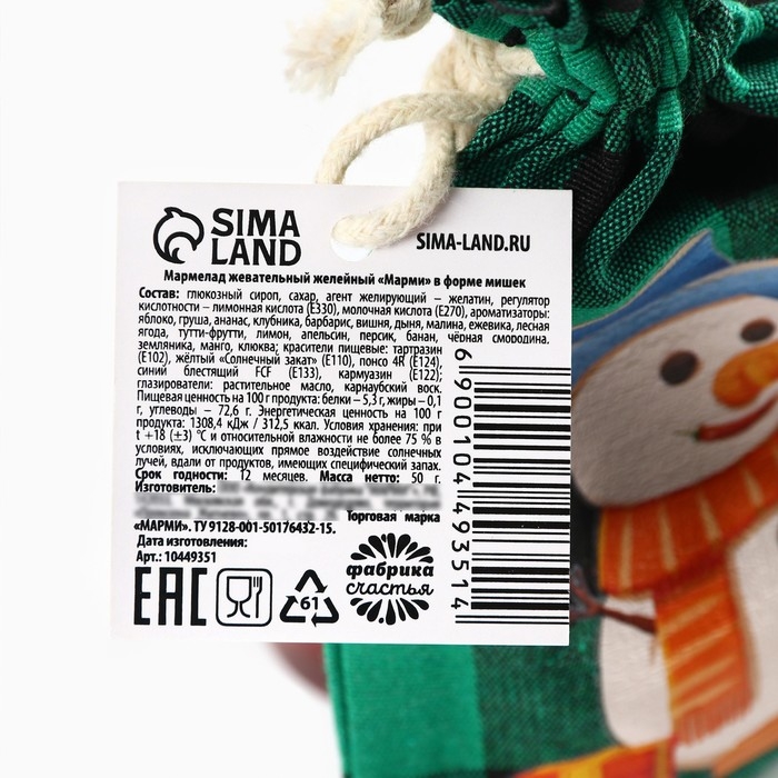 Новый год! Мармелад в мешке «Счастливого нового года», в виде мишек, 50 г.
