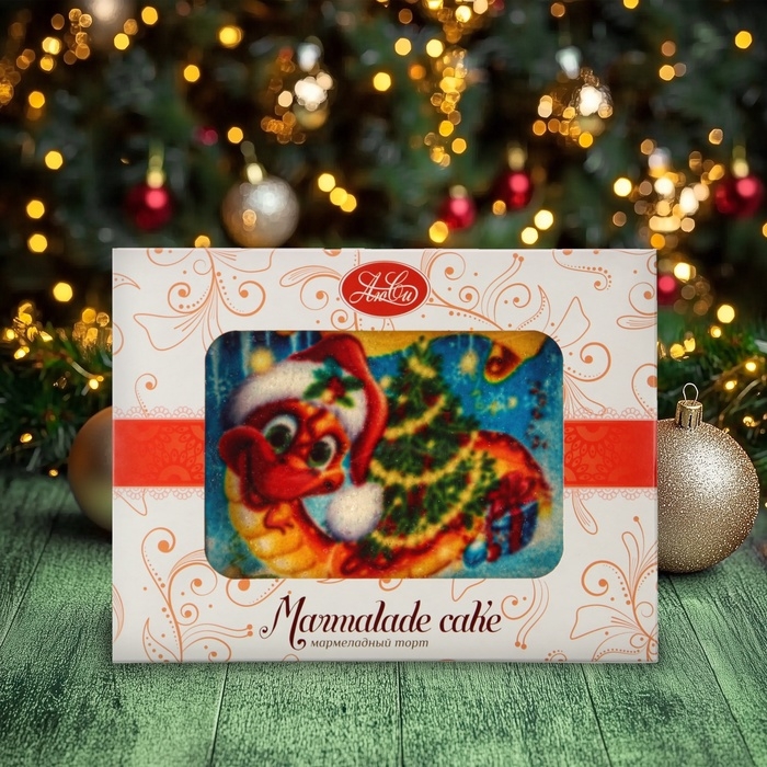 Новогодний мармеладный торт "Символ года" в праздничной упаковке — это великолепное лакомство, которое станет ярким акцентом вашего новогоднего стола. В оформлении торта использованы традиционные новогодние мотивы, а сама упаковка, украшенная снежинками и елочными игрушками, создает атмосферу волшебства и праздника. Каждый кусочек этого торта привнесет в ваше торжество сладкое наслаждение, идеально сочетая в себе аромат и текстуру мармелада, который тает во рту.