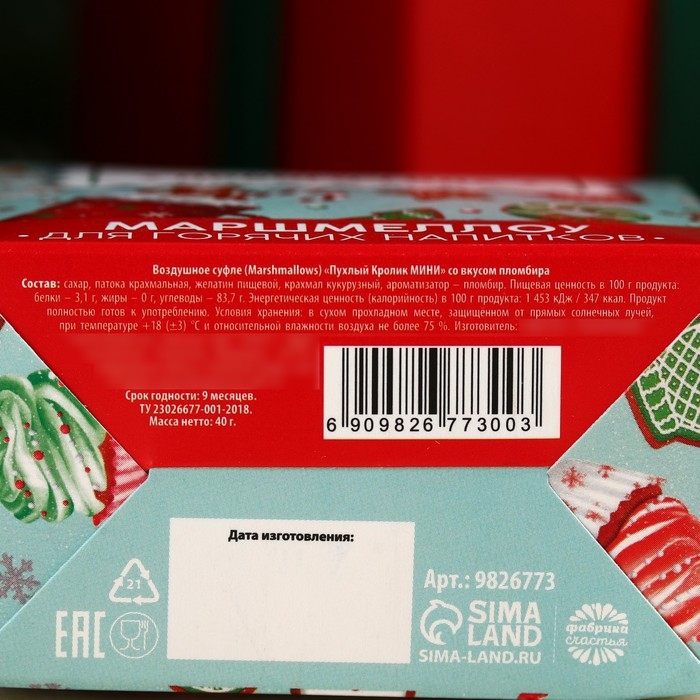 Состав: сахар, патока крахмальная, желатин пищевой, крахмал кукурузный, ароматизатор-пломбир.