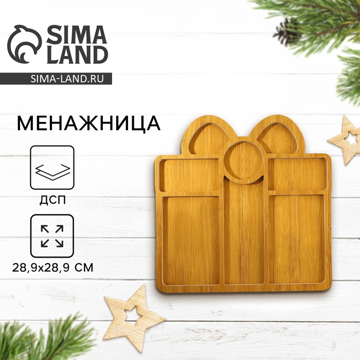 Новый год. Менажница деревянная «Подарок», 28.9 х 28.9 см