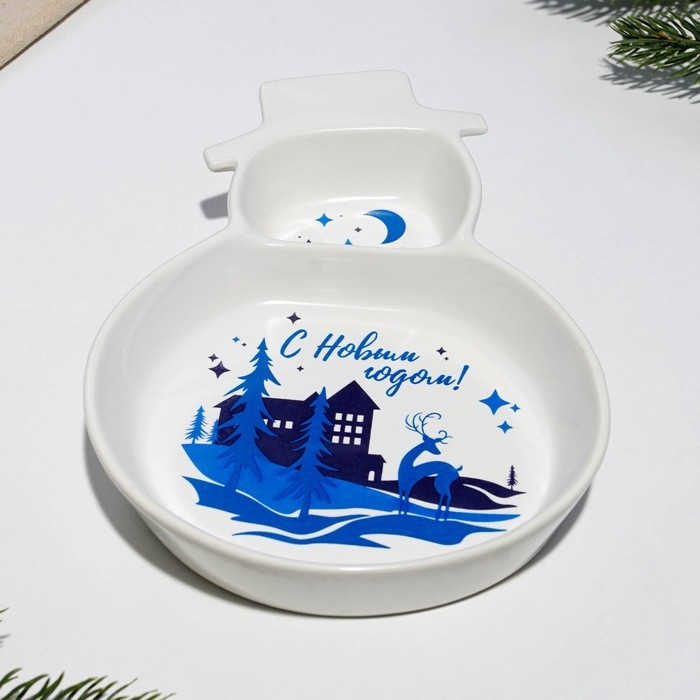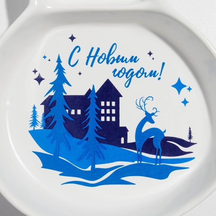 Новый год. Менажница керамическая «С Новым годом!», 14 х 20 х 3 см, цвет белый