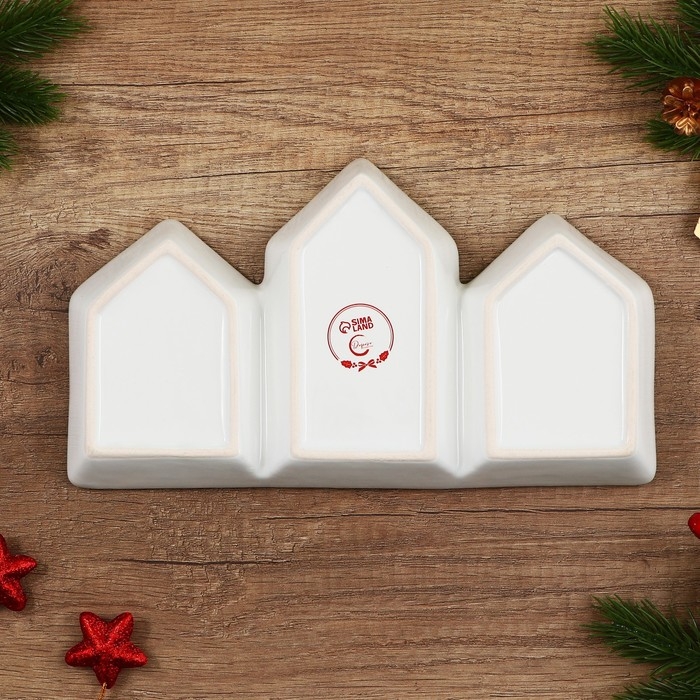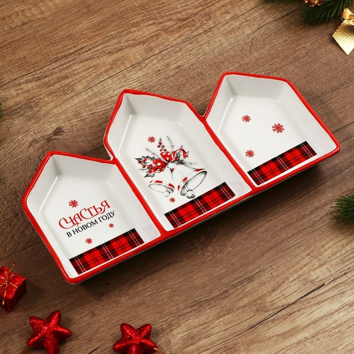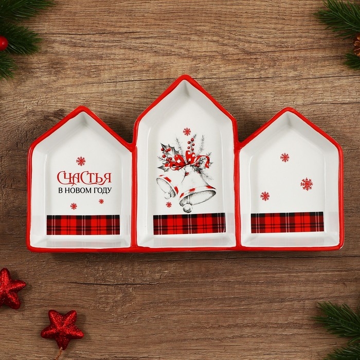 Новый год. Менажница керамическая «Счастья в новом году», 26.5х15х3.5 см, цвет белый