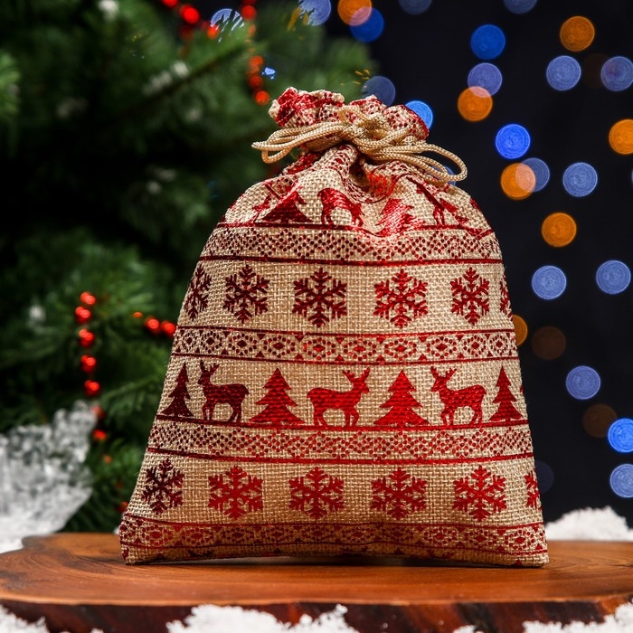 Новый год. Мешочек подарочный из холщи "Скандинавия", 15 х 20 см