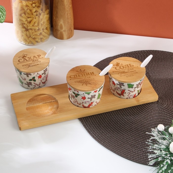 Новый год. Набор банок для хранения «Специи», 250 мл, 3 шт