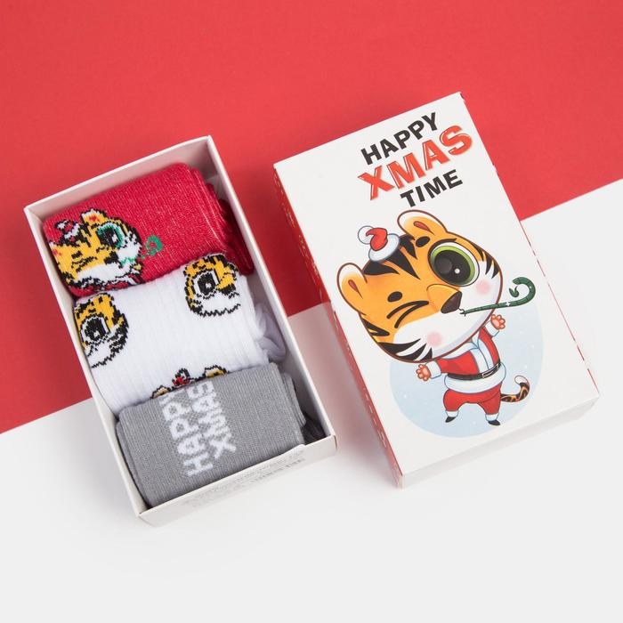 Новый год. Набор детских носков KAFTAN "Тигруш" 3 пары, размер 16-18