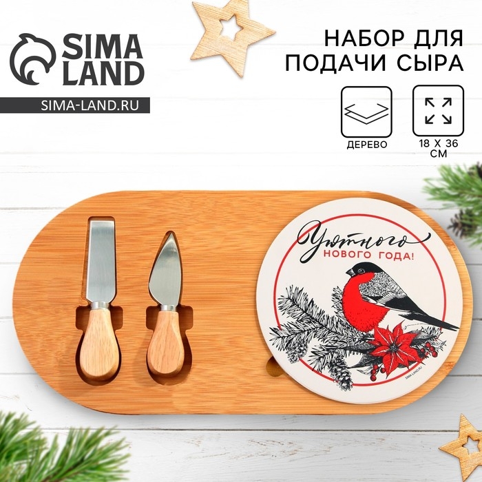 Новый год. Набор для подачи сыра «Уютного Нового года!», 18 х 36 см