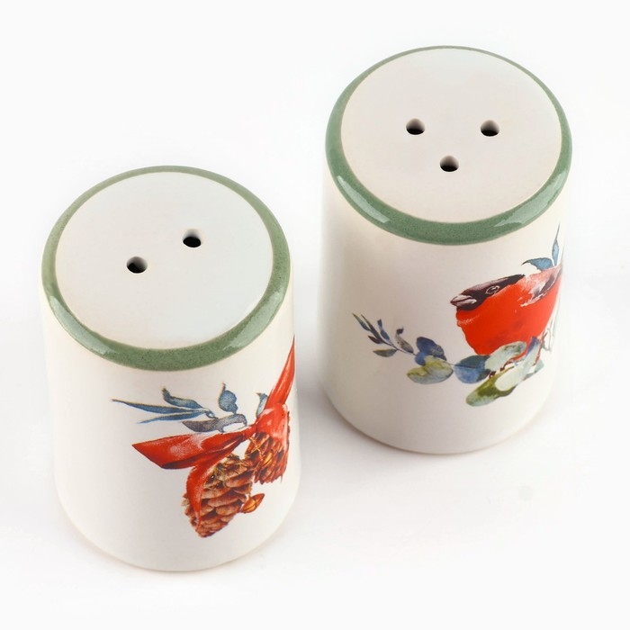 Новый год! Набор для специй новогодний керамический «Снегирь!», 12х6.5х7 см, цвет белый