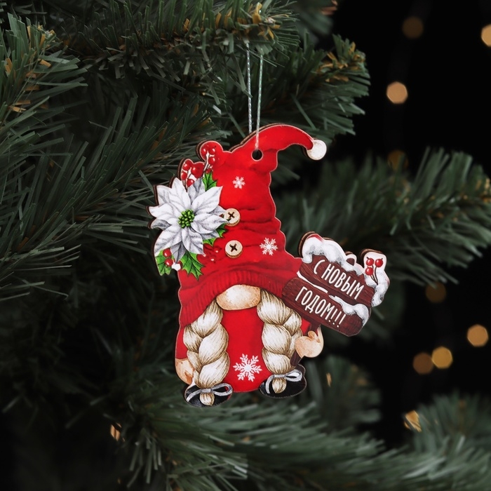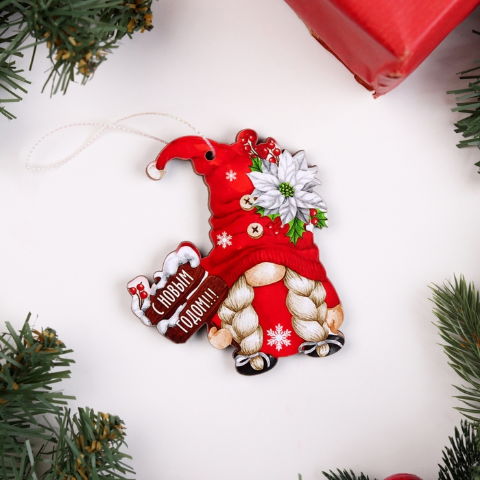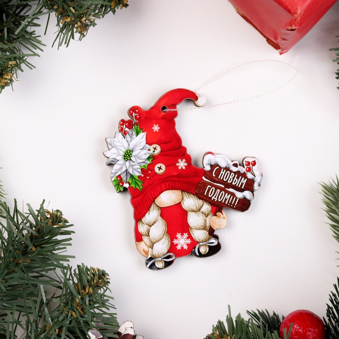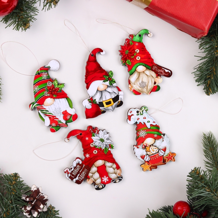 Новый год. Набор ёлочных игрушек "Гномики", 5 шт, двусторонние
