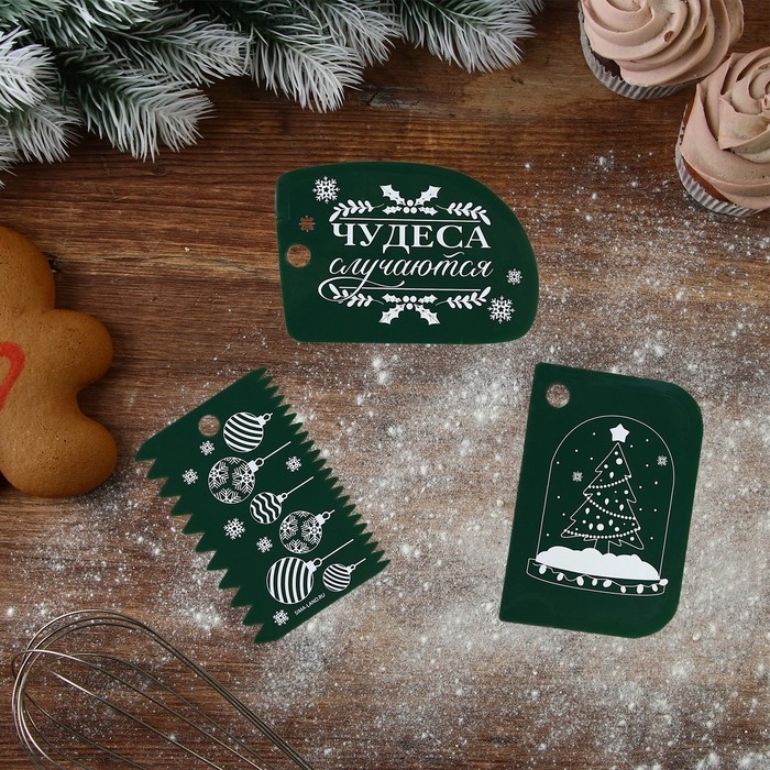 Новый год. Набор кондитерских шпателей «Чудеса случаются», 11.5×8 см, 11.2×6.5 см, 10×7 см, 3 шт