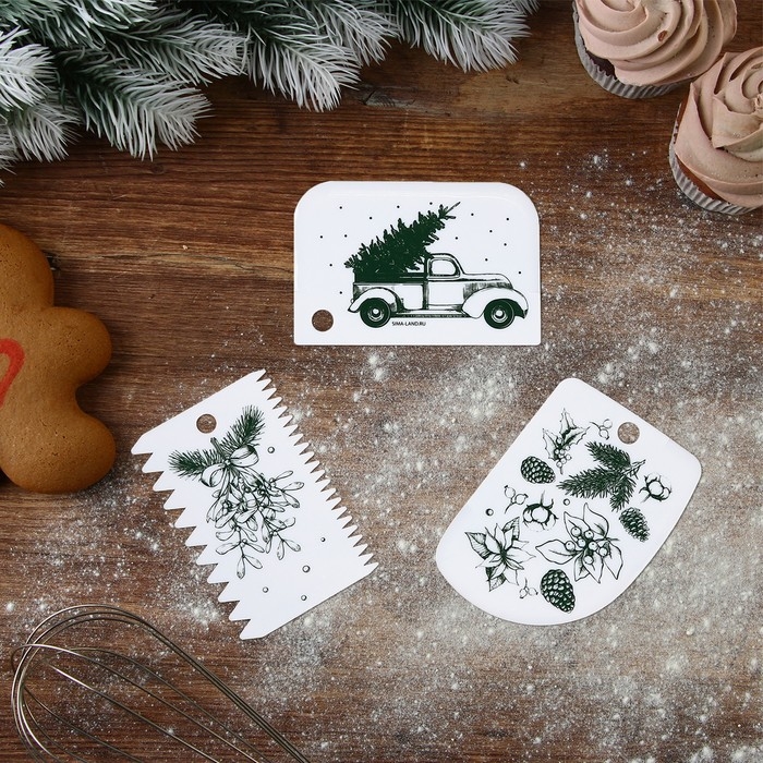 Новый год. Набор кондитерских шпателей «Рождество» 11.5×8 см, 11.2×6.5 см, 10×7 см, 3 шт
