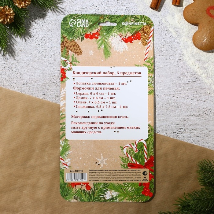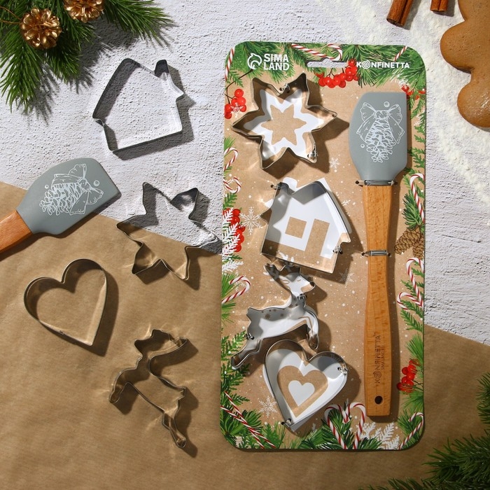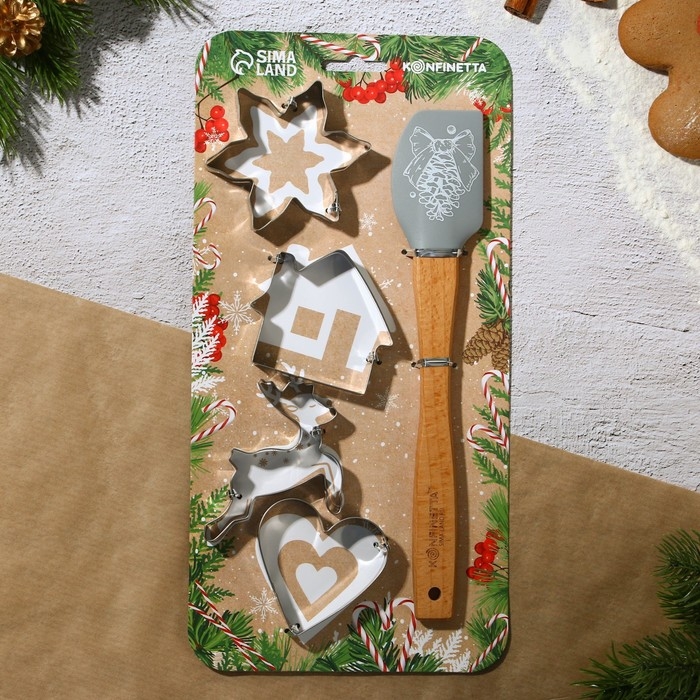 Новый год. Набор кондитерский «Рождество», формы для печенья 4 шт, лопатка 1 шт