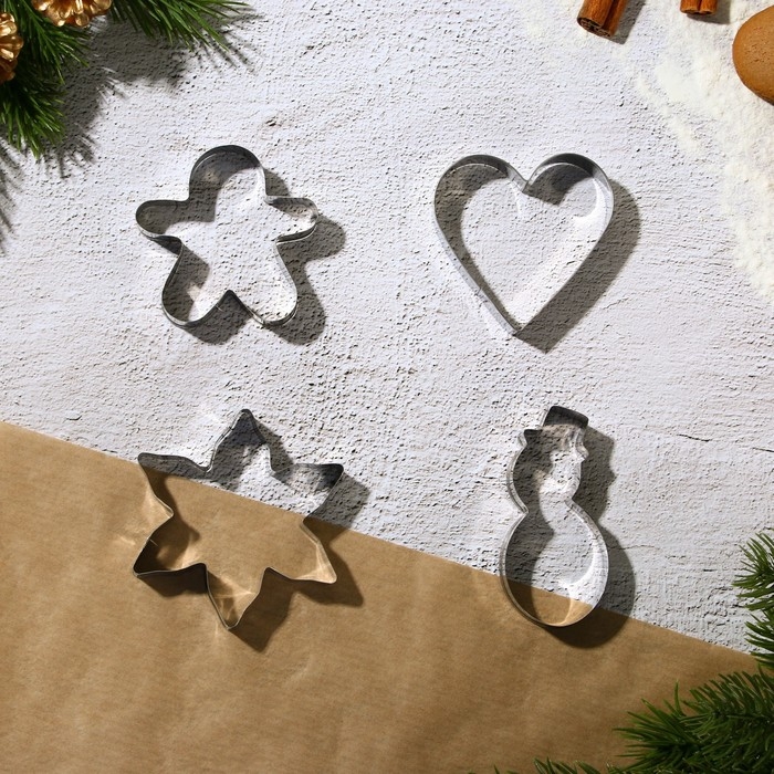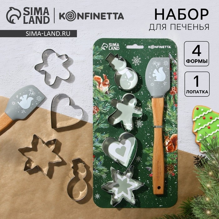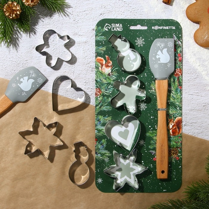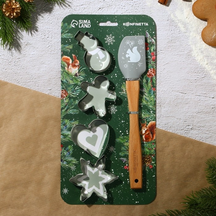 Новый год. Набор кондитерский «Уютные истории», формы для печенья 4 шт, лопатка 1 шт