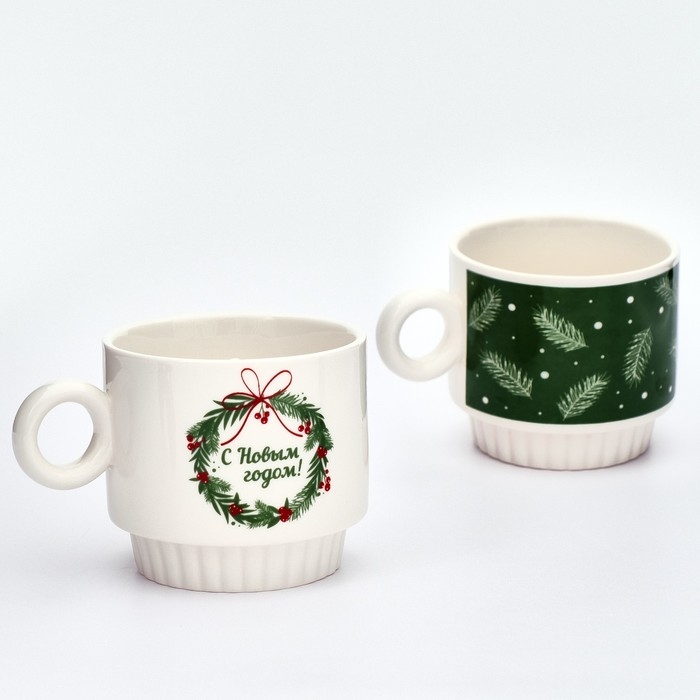 Новый год. Набор кружек из керамики «С Новым годом!», 250 мл, 2 шт