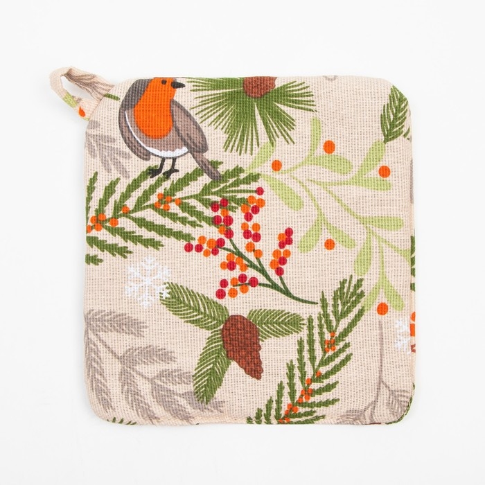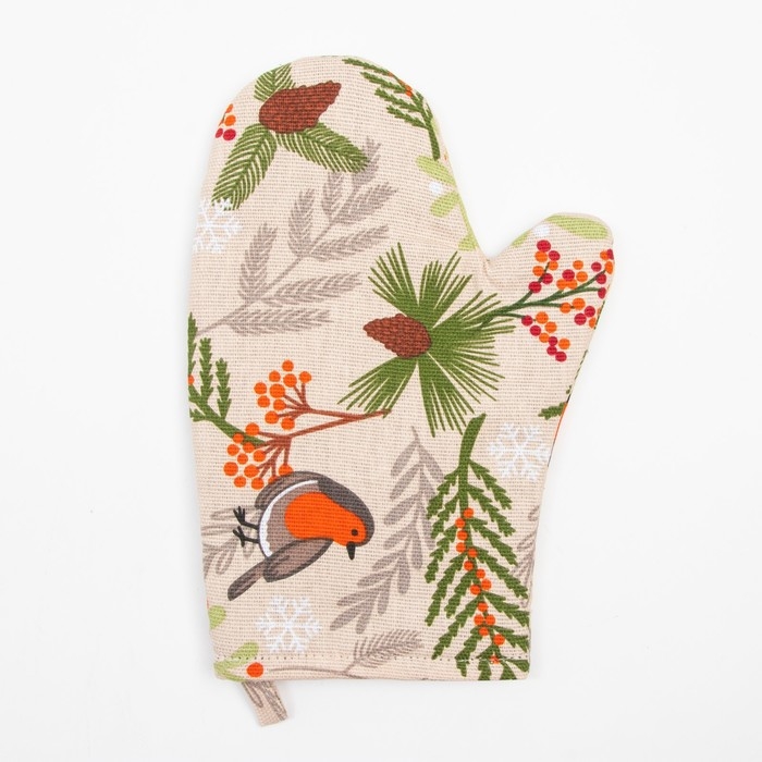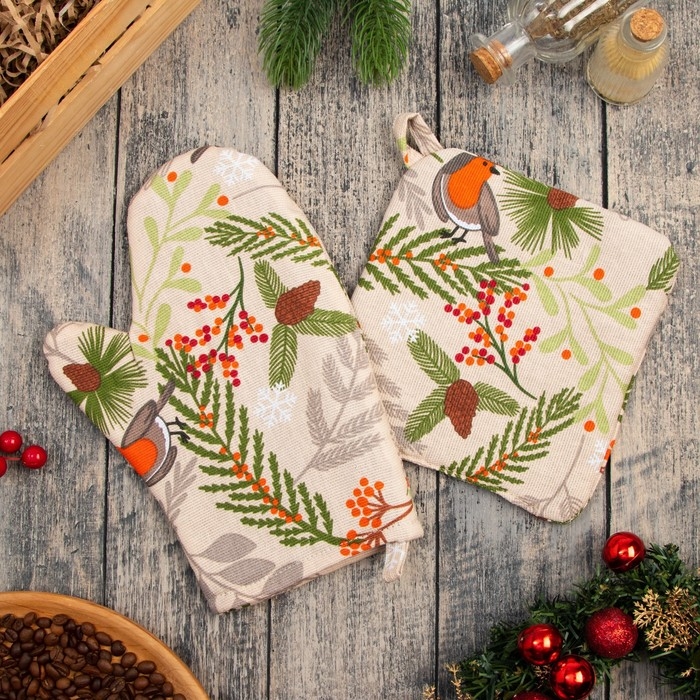 Новый год. Набор кухонный Доляна Bullfinch: варежка 20х27 см, прихватка 19х19 см, 100% хл