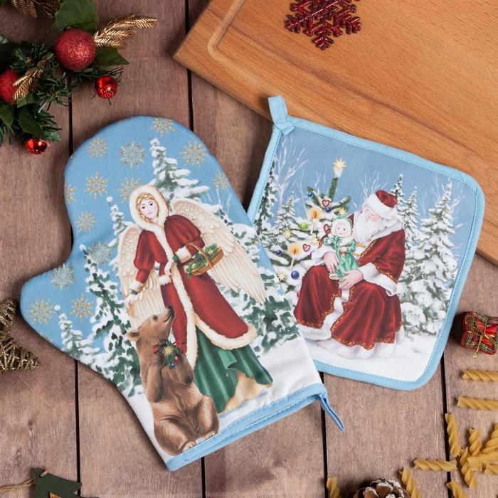 Новый год. Набор кухонный «Новогоднее чудо» варежка-прихватка 20х28см, прихватка 19х19см,100%хл