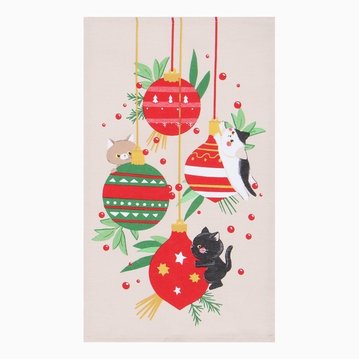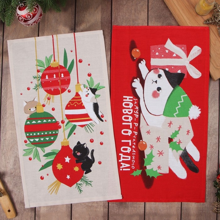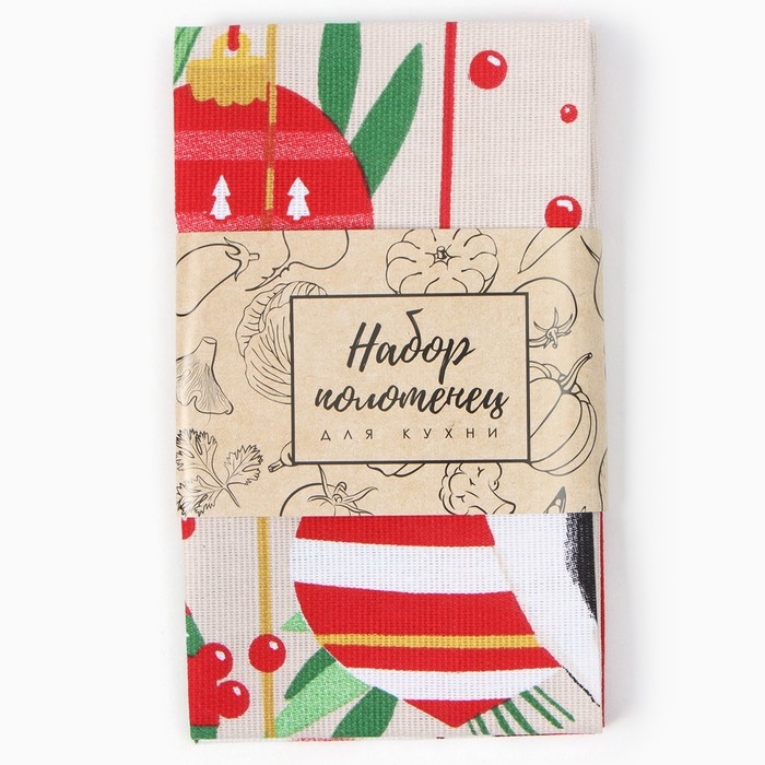 Новый год. Набор полотенец Доляна "Новогодние игрушки" 28х46 см - 2 шт, 100% хл, рогожка 164 г/м2
