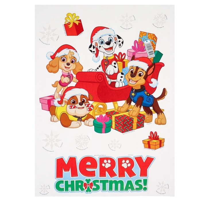 Новый год. Наклейка интерьерная "С новым годом!", Щенячий патруль