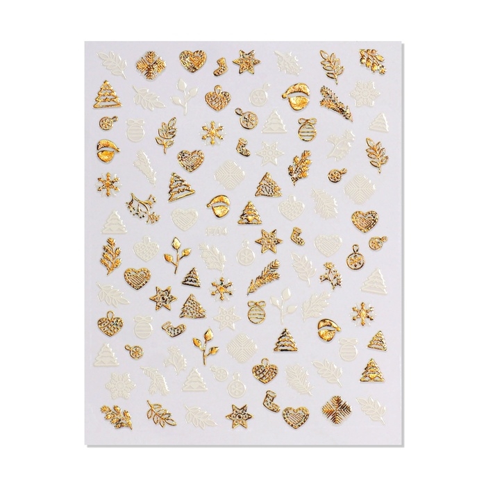 Новый год! Наклейки для ногтей «Праздничное чудо», металлизированные, цвет белый/золотистый